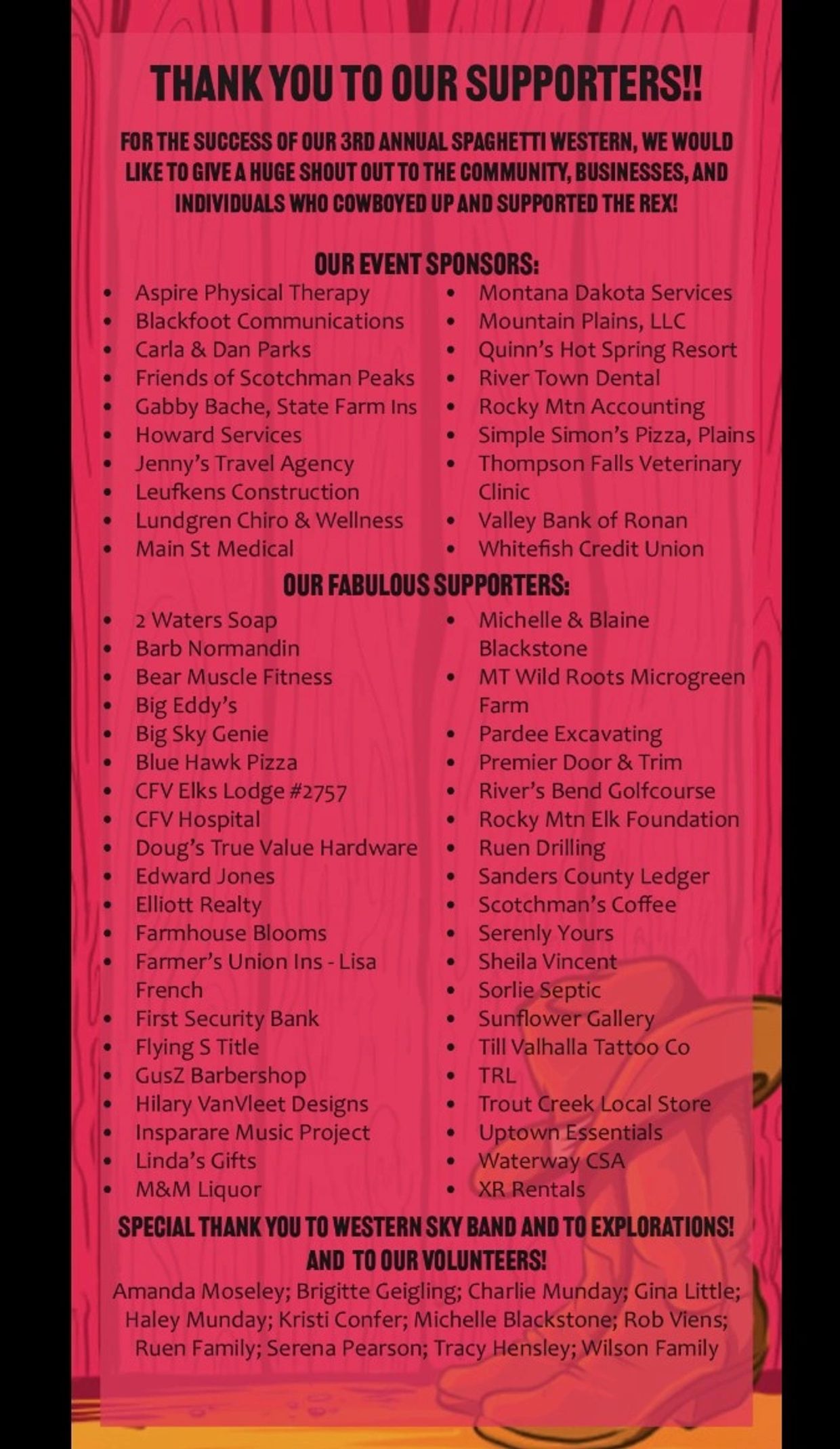 While there are too many to mention, each and everyone of you that visit the theater for our weekly movies, special events, rent the theater for your private event, YOU HELP and we thank you!